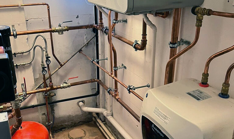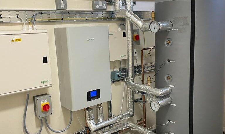 PTS were tasked to replace a gas fire HWS system to an electric powered HWS system . This involved removal of existing plant, replace pumps and reroute of pipework .